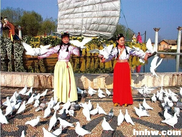 广场上的白鸽是和平的使者,你可以去喂喂它们。它们可能会飞到你肩上以表示欢迎,请不要害怕。你可以拍照留念,作为到清明上河园一游的美好纪念。