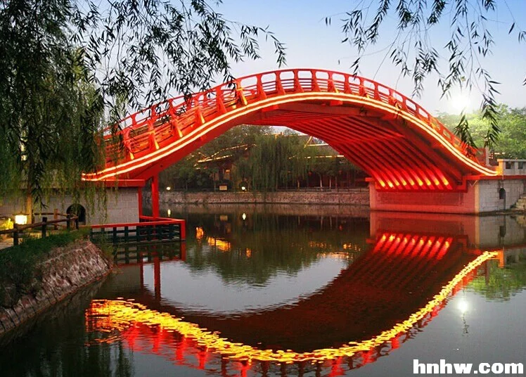 [size=14.399999618530273px] [size=14.399999618530273px]虹桥是中国古代桥梁史上的一项重要的创造,被列为中国十大名桥之一,也是清明上河园中的一处主要景观。它横跨“汴河”,其势如虹,上可走马过人,下可载货行舟。游人每经此处,都要忍不住要多看两眼,或依栏摄影,留作纪念。